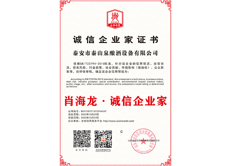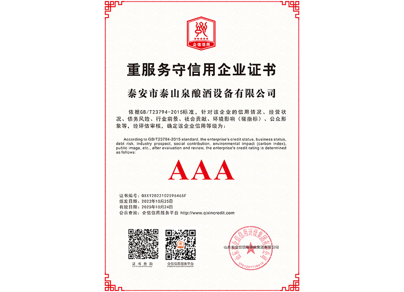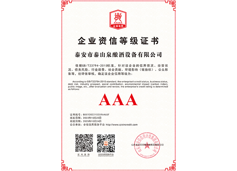 泰安市泰山泉釀酒設備有限公司,是一家專業(yè)從事釀酒設備機械化研發(fā)并集技術咨詢,工程設計,制造安裝,人員培訓及售后服務為一體的綜合性企業(yè),本公司主要產品為:大曲清香、小曲清香、大曲醬香、大曲濃香等香型白酒機械化設備。 本公司與中國科學院自動化研究所簽訂技術服務合同,引進先進技術,研究生產全自動化機械釀酒設備,由中國科學自動化研究所的技術支持,打造最先進的生產釀酒設備,公司有信心打造全國最先進白酒...